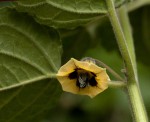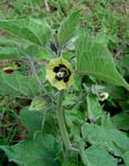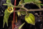 | Description: | Densely hairy perennial (and ? annual) herb up to 1 m high. Leaves ovate-cordate; apex more or less pointed; margin entire to coarsely dentate. Corolla yellow with brown markings, shallowly 5-lobed. Calyx in fruit swelling 3-5 cm. Fruit 12-20 mm, ellipsoid, yellow, held inside the swollen calyx, not filling it. |