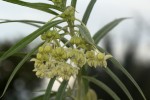 Perennial herbs or shrubs, sometimes twining or scrambling, often succulent and often with milky sap. Stipules usually 0. Leaves mainly opposite or whorled, rarely alternate, simple and usually entire. Flowers in umbels or cymes or, rarely, in racemes, actinomorphic, bisexual. Calyx usually of 5 free sepals, sometimes 5-lobed. Corolla gamopetalous, very variable; lobes 5, sometimes connate at tips. Corona usually arising from or near base of the staminal column, in 1-3 series, consisting of 5 free or connate lobes or processes, rarely 0. Filaments united into a staminal column, often short; anthers with horny wings; pollen in waxy masses attached by caudicles to a horny carrier. Ovaries 2, superior, each 1-locular. Fruit of 2 follicles, sometimes only one developing. Seeds usually with marginal wing and a tuft of long, silky hairs at apex. Worldwide: 248 genera and 2,800 species, tropical and warm areas, especially Africa. Caprivi: 14 genera and 28 taxa. Insects associated with this family: