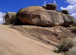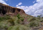 View from the base of Domboshawa hill near the Interpretative Centre looking towards the summit. The "whale rock" is on the right. There is a patch of trees and other woody vegetation near the top just to the left of centre.