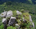 Chinyakwaremba is the Shona name for the hill behind the Leopard Rock Hotel in Vumba. It is often called Leopard Rock but this was actually the name of a huge boulder at the foot of a cliff, where now stands the Castle Guesthouse. On one side, a gentle slope gives easy access to the summit along a well-worn footpath from the main road, while the other side is a sheer cliff down to the hotel and golf course below. Parts of the mountain were seriously invaded by Australian Black Wattle (Acacia mearnsii) but private initiative of some conservation minded people in the area has largely eradicated this pest, and the combination of rehabilitated sub-montane grassland and patches of evergreen forest now offer a wide variety of interesting plants again, including Aloe rhodesiana (Aloaceae), Eulophia tenella (Orchidaceae), Aristea woodii and Gladiolus crassifolius (Iridaceae).