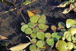Photo: Image shows plant in situ with leaves floating on the water surface