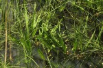 Perennial aquatic herb, up to 1 m tall. Rhizome tuberous, ovoid to globose, up to 2 cm in diameter; roots somewhat fleshy. Leaves submerged or partly emergent with a flattened petiole up to 50 cm long, rarely longer. Lamina linear to more or less narrowly lanceolate, 10-25 cm long, with 3-7 veins from the base. Inflorescences 1-3 on an erect peduncle up to 85 cm long, unisexual on different plants. Male inflorescences up to 40 cm long; female inflorescences up to 15 cm long. Flowers small, whitish, sometimes tinged violet; petals minute or absent in female flowers. Fruit with mostly c. 12 obovoid compressed carpels. |