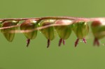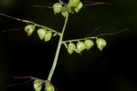 Annual grass 20-80 cm high. Leaves broadly linear to narrowly lanceolate, sagittate ate the base with lobes 2-30 mm long. Inflorescence a narrowly oblong to ovate panicle, 5-15 cm long. Spikelets secund on racemose branches; bristles 2-15 mm long. Spikelets suborbicular, 2 mm long, laterally compressed. Inferior glume 1/3, the superior 1/2 length of spikelet. Superior lemma conspicuously gibbous, keeled, rugose.
