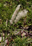 Perennial, a water loving creeping grass, spreading with long rhizomes and often forming dense stands. The inflorescences are silvery and narrow when young, opening up into broad cottonwool spikes later. Culms 10–120 cm high. Panicle 3–22 cm long, 1–3 cm wide, spiciform but occasionally the lowest branches loose. Spikelets 2.2–6 mm long, obscured in copious silky white hairs; stamens 2. |
