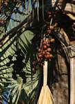 Tall erect, single-stemmed tree. Stems erect, rarely suckering to form clumps. Leaves crowded on top of the stem, fan-shaped, up to 2.5 m including the petiole. Petiole armed with recurved thorns. Male and female flowers on different trees; male flowers in short spikes; female flowers in large sprays, which develop into branched trusses of fruits. Fruits almost spherical, 4-6cm in diameter. The hard white kernel of the seed is known as "vegetable ivory". This species is very similar to the closely related H. coriacea and there is some debate about the exact taxonomic status of the two. H. coriacea differs mainly in the fruit being pear-shaped. The trees appear to be generally smaller and sucker more readily. |