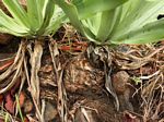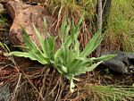 Tall perennial herb, up to 1 m tall, growing from a large bulb, often half above ground with tough, overlapping fleshy scales. Leaves tough, erect, up to 30 × 3 cm, absent at flowering time. Flowers in a dense terminal raceme, up to 60 cm long, white with a green midline on the outside of the tepals. Flowers opening in the morning, usually closing by midday. |