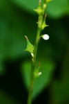 More or less erect branched annual herb, with ribbed stems up to 1 m tall, usually smaller. Leaves ovate-elliptic to elliptic-lanceolate in outline, up to 8 × 3 cm, usually with 3 unequally deep lobes on each side. Flowers in 2-5-flowered clusters in the axils of bracts, together appearing as spike-like terminal or axillary inflorescences, 25-40 cm long. Corolla 4-5-lobed, 6-8 mm in diameter, white or pinkish. Fruit an erect or spreading, trigonous nut, 5-7 mm long, with 3 prickles in the middle of the angles, pubescent. |