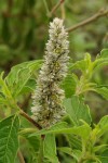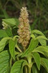 Much-branched prostrate to erect annual herb, often straggling or sprawling with 4-angled stems up to 1.5 m long. Most parts of the plant thinly to densely covered in whitish hairs. Leaves variable from broadly ovate to narrowly lanceolate-oblong or elliptic, 1-15 cm long, more or less densely covered in whitish hairs on both surfaces; petiole 0.4-2 cm long. Inflorescences terminal, spike-like, 1.25-2 cm wide and up to 8 cm long, white to pale green or crimson to maroon; bracteoles ending in a long spiny tip. Flowers minute embedded and hidden in dense whitish hairs. |