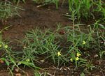 Erect or sub-erect perennial herb, up to 40 cm tall. Leaves and stems somewhat fleshy. Leaves linear to narrowly linear-lanceolate, green to bluish-green; margin rolled under. Flowers axillary, mostly solitary, rarely in clusters of 2-3, yellow, opening in the afternoon and fading by nightfall. Fruit a subspherical capsule. Seeds c. 20, shiny black with a white hilum, 1.5-2 mm in diameter, fairly smooth with faint concentric rings (visible with a lens). |