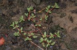 Small prostrate annual herb. Stems and branches spreading, reddish, up to c. 7 cm long. Leaves opposite, fleshy 2-4 mm long, broadly elliptic to ovate with numerous stipular hairs, c. 2 mm long. Flowers solitary or in clusters of 2-3 at the ends of branches; petals 4, purpish or white, united about halfway; stamens 4. Fruit a capsule, ovoid-globose, c. 2 mm long, dehiscing horizontally. |