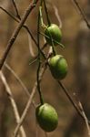 Woody climber or scrambling shrub, growing into the canopy of other trees and shrubs. Leaves alternate, grey-green, 1-3 foliolate, narrowly elliptic to ovate, rounded at the apex but with a bristle-tip. Flowers clustered near the ends of branches, white with very small petals and a hemispherical head of long, conspicuous stamens. Fruits ellipsoid with a smooth surface, green to orange when ripe. See subsp. crustata, which is only easily distinguished when in fruit, these being very rough-skinned, resembling small lemons. |