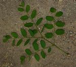 Deciduous tree, to 8 m. Bark rough, both vertically and horizontally fissured. Twigs with brown-hairy apex. Leaves with pinnae in 2-5 pairs. Leaflets arranged alternately, 6-15 per pinna; lamina 1.5-7.5 × 0.7-4.2 cm, elliptic or sometimes ovate-elliptic or ± obovate, appressed-puberulent; base ± asymmetric; apex obtuse and emarginate. Spikes pendulous, to 20 cm. Petals c.4-5 mm, white to pale green. Pod 4-6.5 × 2-3 cm. Seeds c.9-12 mm, elliptic, flattened, brown. |