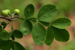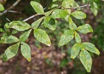 Shrub or small tree with arching branches. Younger branches armed with robust spines up to 2 cm long. Leaves imparipinnate with 2-4 pairs of opposite leaflets and a terminal leaflet; leaflets elliptic to obovate, covered in greyish hairs, translucent gland-dots present, strongly aromatic when crushed, margin scalloped; petiole and rhachis winged. Flowers in small branched sprays, axillary or on dwarf spur-branchlets, c. 10 mm in diameter, white or lemon-yellow. Fruit spherical, 1-1.5 cm in diameter, reddish-brown, dotted with oil glands. |