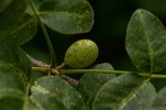 Multi-stemmed shrub or small deciduous unarmed tree. Bark smooth pale grey, peeling in small pieces to reveal green under layer. Leaves, imparipinnate with 2-6 pairs of leaflets and a larger terminal leaflet; leaflets elliptic-oblong, up to 7 cm long, grey-green with stiff bristly hairs; margins entire or finely crenulate. Flowers small, yellow in axillary branched heads. Fruit ellipsoid, c. 2 cm long, pubescent, apricot-coloured when ripe. |