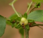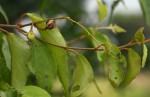 Scrambling shrub or small tree, up to c. 4.5 m tall. Bark light grey-brown. Leaves alternate, ovate to elliptic, up to c. 12.5 cm long, thinly textured, sparsely stellate hairy on both surfacess, 3-5-veined from the base; apex often drawn out into a long point; base with two glands next to the petiole below; margin sparsely and finely toothed; petiole 1.5-5.5 cm long, often bent near the base. Flowers without petal, creamy-green to yellowish in racemes 3-17 cm long, unisexual, often in separate inflorescences on different branches or even on different trees, sometimes with a few female flowers at the base of an otherwise male inflorescence. Fruit a 3-lobed capsule, 5-7 mm in diameter, green to black, on a stalk 1-2.5 cm long, dehiscent. |