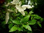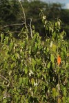 Shrub or small tree, up to 4 m tall. Bark brownish-grey; branchlets covered with pale whitish to yellowish hairy scales. Leaves alternate, elliptic to lanceolate, up to 9.5 cm long cm, yellowish-green above with a rough surface of sparse stellate hairs, densely covered in white to yellowish hairy scales below, with two small glands next to the petiole; margin entire. Flowers in short terminal spikes, unisexual, usually on the same tree, pale yellowish-green, c. 4 mm in diameter. Fruit a 3-lobed capsule, c. 6 mm in diameter, covered in greyish to yellowish scales and often with scattered black dots. |