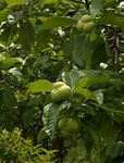 Small to medium-sized tree. Leaves elliptic-obovate, varying from glossy dark green to yellowish green; margins finely crenate; petiole grooved along the top. Flowers in slender spikes, small, greenish yellow, unisexual with a few female flowers a the base of the spike. Fruit 3-lobed, thin-walled, bladder-like, dark brown. |