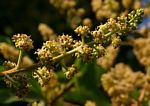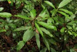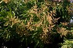 Medium to large tree. Leaves alternate, simple, glabrous, oblong-lanceolate with a prominent midrib. Inflorescence a large (up to 30 cm long) pyramidal panicle with male and female flowers in the same panicle; axis reddish, shortly hairy. Sepals 5, green with whitish margin. Petals 5, 3-5 mm long, whitish with the 3-7 nerves yellow or reddish. Stamens 1(-2), fertile; staminodes 3(-4), very short. Disk c. 2 mm tall, thick. Fruit a large fleshy drupe, variable in shape and size, yellow to red when ripe. |