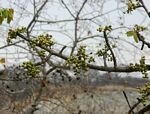 Medium-sized deciduous tree. The bark has a coppery tinge. Leaves compound with up to 11 pairs of leaflets and a terminal leaflet. Leaves markedly discolorous, the upper surface green, the lower grey with dense felty hairs. Individual flowers small but produced in sweetly scented spikes up to 14 cm long, cream to pale yellow in colour, and borne when the trees are leafless. Sexes are separate, the female spikes being shorter and more compact than the male spikes. |