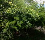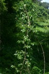 Scrambling shrub or small tree. Most parts densely velvety. Leaves opposite, obovate, to elliptic, yellowish green above, paler below, densely covered in soft, short, fawn-coloured hairs on both surfaces, margins entire, sometimes glandular. Flowers in axillary and terminal branched heads, very small, yellow. Fruit 1-3 paddle-shaped carpels, up to 5 × 2.5 cm, oblong or elliptic, yellowish green, distinctly striated. |