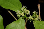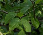 Small to medium-sized tree with dense foliage. Leaves opposite, 3-5-veined from the base, elliptic to ovate, glossy dark green, thinly textured, hairless. Flowers in axillary clusters of several, stalked, few-flowered heads, whitish to yellowish-green. Fruit up to 20 mm in diameter, purple-black when ripe, resembling grapes. |