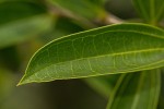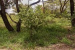 Small, deciduous to sometimes evergreen tree. Bark grey to brown, rough and flaking in to squares lower on older trunks, grey and smooth higher up and on younger trees; branches corky and with swollen nodes and conspicuous lenticels. Leaves opposite, 3-veined from (near) the base, narrowly elliptic, 3-8 cm long, rigid or leathery, hairless with a hard, spiny apical point; margin entire; petiole thick, up to 4 mm long. Inflorescences in tight, axillary clusters, c. 2 cm wide; flowers greenish-white, up to 9 mm long. Fruit up to 12 cm in diameter, with a hard, woody shell, bluish-green, yellow when ripe, edible but less tasty than of other species. |