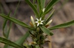 Erect perennial herb, up to 30 cm. Leaves linear, lanceolate or narrowly oblong, 3-veined from the base, glabrous. Flowers in axillary clusters, white with greenish lines, often drying yellowish. Fruit a small obovoid capsule. |