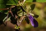 Shrub or small multi-stemmed tree. Leaves opposite or 3-4-whorled, usually crowded near the ends of branches, ovate to broadly elliptic, up to 9 × 5 cm, velvety above, often densely woolly and paler below; petiole obscured by the decurrent leaf base; margin coarsely toothed. Flowers in few-flowered terminal and axillary heads, showy, c. 2 cm in diameter, purple-blue and white with long exserted stamens. Fruit c. 10 mm in diameter, 2-4-lobed, surrounded by the spreading calyx lobes when young, red to black when ripe.