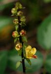 Erect hemiparasitic herb, up to 45 cm tall. Stems branching near the base, often blackish or purple-red and fleshy. Leaves small, usually less than 1 cm long, appressed and scale-like or spreading near the inflorescences, lanceolate-oblong to ovate-oblong. Flowers in the axils of leaves or leaf-like bracts, together forming a spike-like inflorescence, yellow to orange, often with dark purple-red lines. |