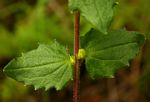 Erect annual herb, up to c. 50 cm tall. Stems simple or branched, with coarse whitish hairs. Leaves mostly opposite, spreading, more or less sessile, sometimes alternate and shortly petiolate within the inflorescence, broadly ovate to almost round, 1.5 - 5 cm long; margin coarsely toothed. Flowers in the axils of leaves or leaf-like bracts, pale yellow to dull orange, sometimes purple-veined. See var. sessiliflora and var. monticola (Engl.) Melch. for comparison. |