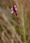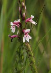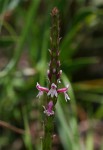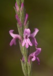Erect, annual herb, 10-55 cm tall. It is a root parasite of grasses. Stems usually unbranched, pubescent with whitish hairs. Leaves opposite, erect along the stem, linear-lanceolate, 5-20 mm long, with rough, thick-based hairs. Flowers in dense terminal spikes, several flowers open at the same time. Bracts lanceolate, imbricate, ciliate hairy on margins and midrib. Calyx tube 2-3 mm long; lobes distinctly 5-veined. Corolla more or less distinctly 2-lipped, pink, violet or whitish; tube up to 11 mm long, angled just below the lobes; lower lobes c. 4 mm long, all narrow. Capsule c. 3 × 1.5 mm. |