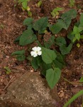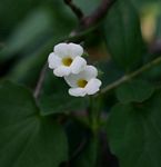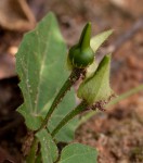 Scrambling or trailing herb with stems up to 1 m long, occurring in riverine fringes. Leaves heart-shaped, roughly hairy; margin with coarse teeth in the basal part; petiole 15-60 mm long, not winged. Flowers white to pale orange with a yellow centre; corolla tube up to 2 cm long, clasped in green leaf-shaped bracts. |