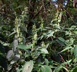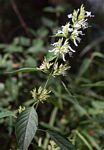 Perennial herb often sprawling, up to 1 m tall. Leaves opposite, petiolate, ovate, 2-8 cm long, covered in short hairs. Flowers in terminal and axillary clusters, held in glandular hairy bracts; corolla 2-lipped, white to pale pinkish with dark lilac markings. |