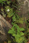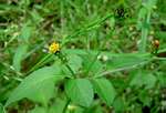 Annual herb to 1.5 (-2.2) m. Leaves petiolate, (1-)3-foliolate, glabrous or pilose. Terminal leaflet up to 9 × 5 cm, narrowly ovate to ovate-oblong; base cuneate; apex acuminate; margin ciliate, crenate or serrate-crenate; lateral leaflets smaller, asymmetric. Inflorescence laxly corymbose. Capitula up to 1 cm in diameter. Rays 0 (var. pilosa) or creamy-white, 4-7 and up to 1.5 cm, exceeding (var. radiata Sch.Bip.) or not exceeding (var. minor Blume) the phyllaries. Achenes up to 1.6 cm, blackish. Bristles 2-3, retrorsely barbed. |