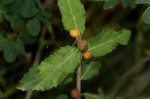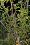 Shrub up to 1.5(4) m tall. Leaves alternate; stipules 2-6 mm. long, caducous; leaf margin usually serrate-dentate or pinnately incised; leaf blade rough to the touch. Figs solitary in the leaf axils; ripe figs split open to reveal bright red pulp. Distinguished from other members of the Section Sycidium by the suffrutescent habit. Separate male and female plants; stipules not completely enclosing the stem apex; figs with bracts on the receptacle as well as basal and osteolar (Subgenus Ficus, Section Sycidium). |