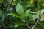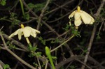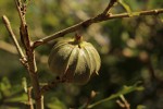 Usually a small, densely-branched deciduous tree. Leaves in whorls of 3 on short, rigid side branchlets, which look almost like blunt spines. Flowers solitary at the ends of the branchlets, white and showy but short lived, turning yellow when fading. Fruit greyish to pale brown, ellipsoid to almost spherical with 8-11 coarse ribs, sometimes only shallow, covered in small wart-like lenticels. |