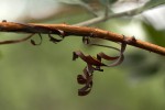 Semi-deciduous shrub or tree; bark grey and more or less fissured and flaking; young branchlets with bark distinctly peeling off, revealing a reddish-brown under bark. Leaves opposite, narrowly to broadly elliptic-oblong up to 26 × 16 cm but usually 6-10 cm long and 3-6 cm wide, pubescence variable depending on the subspecies but often more densely when young, inconspicuously covered with scales beneath and with conspicuous net-veining, especially beneath; margin entire, often rolled under; petiole stout, up to 10 mm long. Flowers in dense axillary spikes, up to c. 10 cm long but mostly 4-6 cm long, greenish-yellow to yellow, appearing just before or with the new leaves, sweetly scented; petals small, sometimes ciliate at the apex. Fruit 4-winged, as long as wide, 2-3 cm, sticky and bright red when young, drying to tan-brown. |